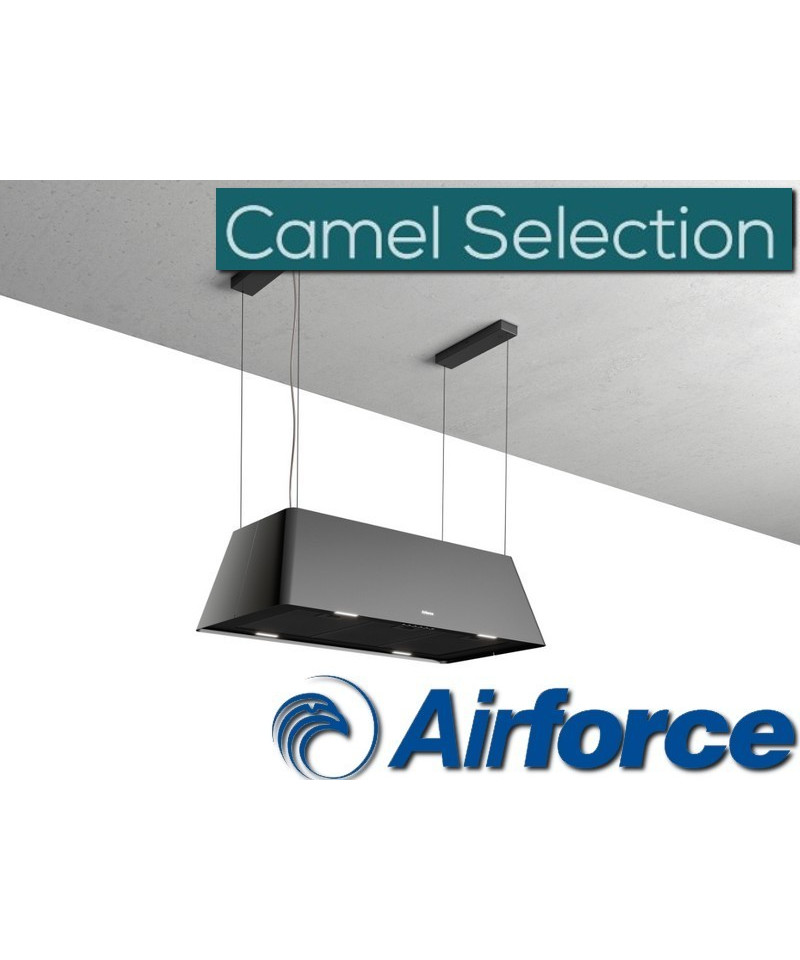Cappa ad isola nera o inox, dimensioni 100 cm, illuminazione 4x2,1 W led 3500 K 300 lux, pulsantiera elettronica a 4 velocità (3+1 intensiva), solo filtrante, filtri odori regular inclusi, portata IEC 600 m3/h, rumorosità 49/64/68 dB(A), distanza minima dal piano cottura 50 cm se induzione e 65 cm se a gas, timer, classe energetica C, dimensioni uscita aria 150 mm, filtri grasso lavabili.