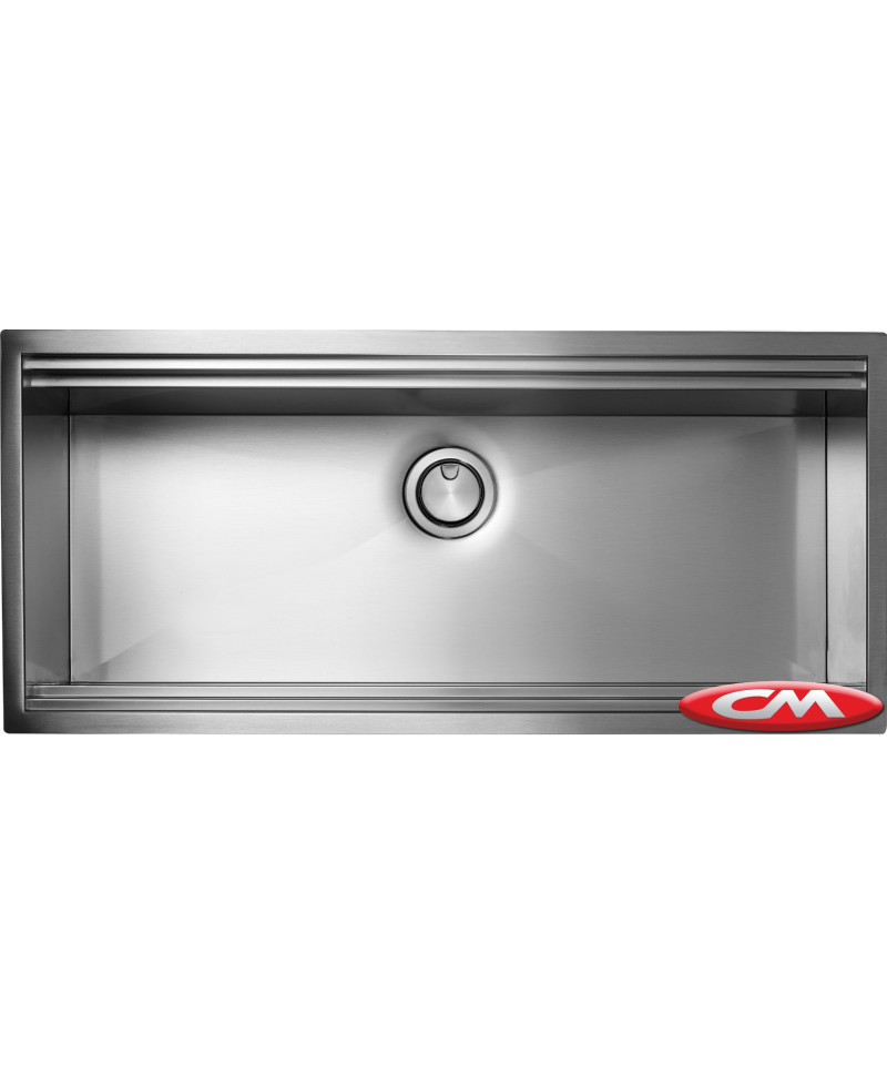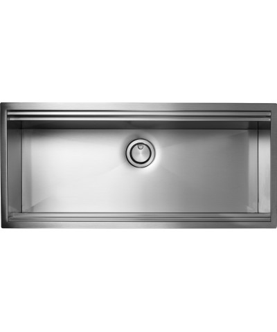Lavello in acciaio inox AISI 304-18/10, 100x45 cm, sottotop, satinato, base 120 cm, profondità vasca 25 cm, foro sottotop 95x40 cm, piletta rondò manuale.
