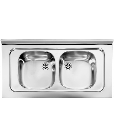 Lavello in acciaio inox AISI 304-18/10, appoggio, 100x50 cm 2V, satinato, vasca saldata, base 90 cm, profondità vasche 17 cm, piletta standard manuale da 2".