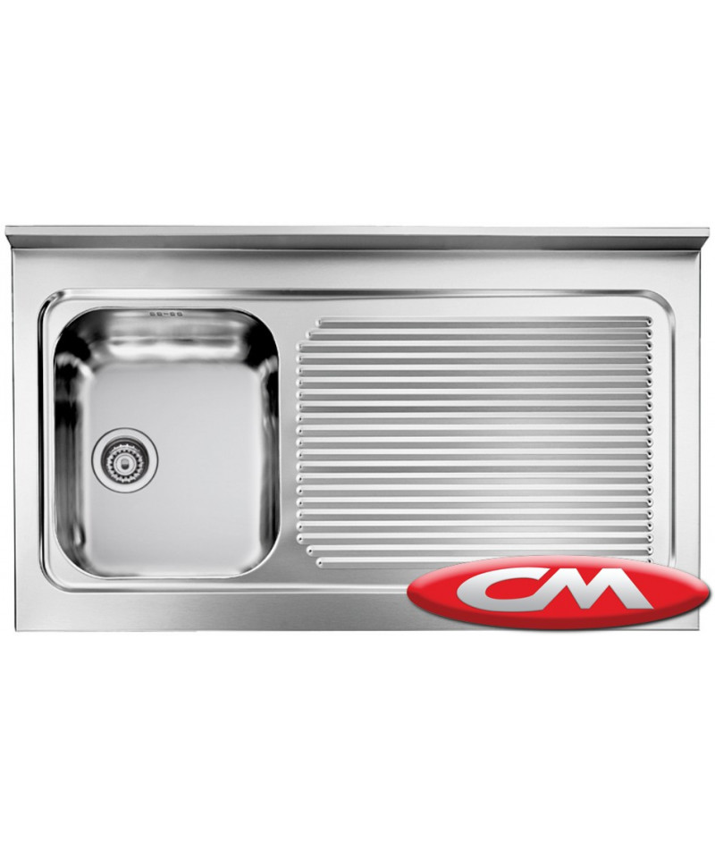 Lavello in acciaio inox AISI 304-18/10, vasca saldata, 105x60 1V, appoggio, satinato, base da 45 cm, profondità vasca 19 cm, piletta standard manuale da 3", versione non reversibile.