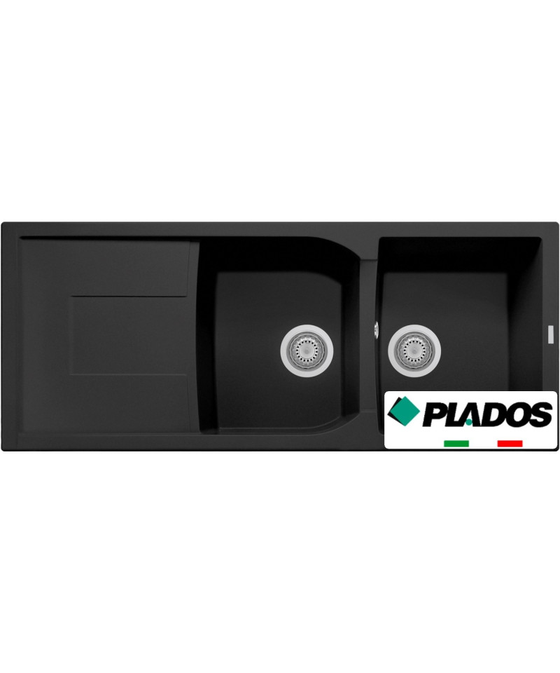 Lavello a due vasche più scolapiatti, serie Corax, reversibile, 1160x500 mm, base da 80 cm. Foro per l'incasso 1140x480 mm.