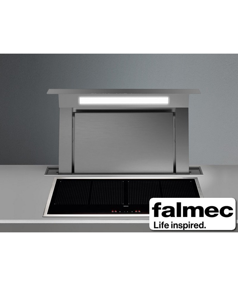 Cappa downdraft da 120 cm, aspirante/filtrante, acciaio inox (AISI 304) finitura Scotch Brite, vetro temperato nero o pannello in acciaio, aspirazione perimetrale frontale, cornice in acciaio AISI 304, inclinazione frontale di 5° per maggior efficacia aspirante, telecomando opzionale, Dialogue System, pulsantiera touch a 3 velocità + boost, livello sonoro 51-64 dB(A), filtro metallico Top asportabile e lavabile, filtro Carbon.Zeo combinato rigenerabile opzionale, strip LED (4000 K), voltaggio frequenza 220-240 V 50-60 Hz, peso netto senza motore 43 kg, classe energetica B/C.