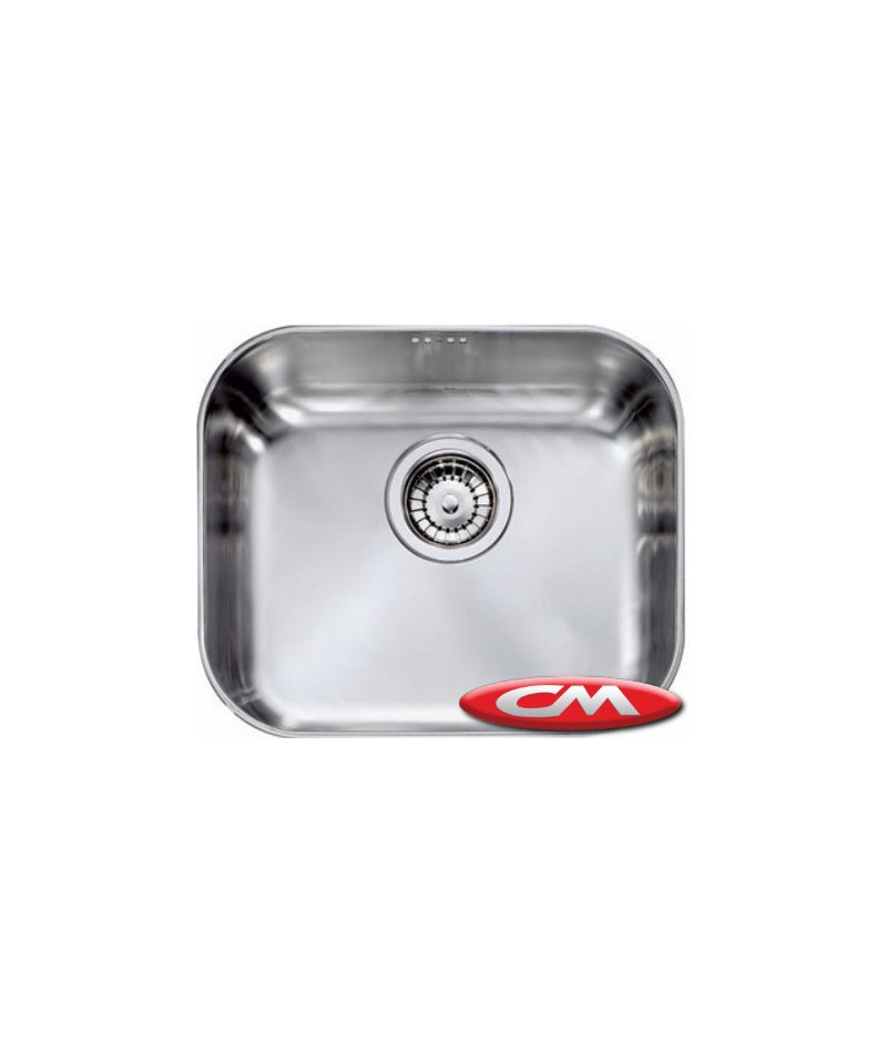 Lavello in acciaio inox AISI 304-18/10, piletta da 3", antigraffio, sottotop, 34,2x41 cm R80, base (1) da 50 cm, base (2) 60 cm, profondità vasca 19 cm, foro sottotop vedi manuale di installazione, piletta standard manuale.