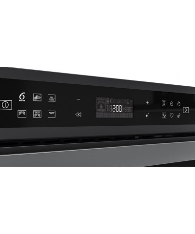 Microonde combinato, estetica W6 Black Fiber. Display LCD Text Assisted, finitura Black Fiber, maniglia esterna W Collection, microonde Steam, tecnologia microonde 3D System. Funzioni di cottura: 8 funzioni principali (riscaldamento, riso & pasta al vapore, crisp, microonde, grill + microonde, grill, scongelamento, SmartClean), 29 funzioni automatiche (6 scongelamento, 5 auto riscaldamento, 5 auto crisp, 5 auto cook, 6 auto steam, 2 riso&pasta), tecnologia 6° SENSO, funzione crisp, Jet Defrost (scongelamento rapido), 6° SENSO Cook. Cavità 31 L, grill al quarzo 800 W, apertura porta a ribalta, piatto girevole 32,5 cm, pannello comandi 8 cm.
