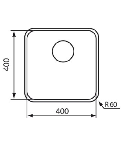 Lavello in acciaio inox AISI 304-18/10, piletta da 3", satinato, sottotop, 40x40 cm R60, base 60 cm, profondità vasca 20 cm, foro sottotop vedi manuale di installazione, piletta standard manuale.