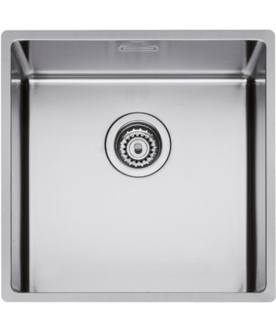 Lavello in acciaio inox AISI 304-18/10, 44x44 cm, satinato, sottotop, base sottotop 60 cm, profondità vasca 20 cm, foro sottotop 40x40 cm R12, piletta Vortex manuale.
