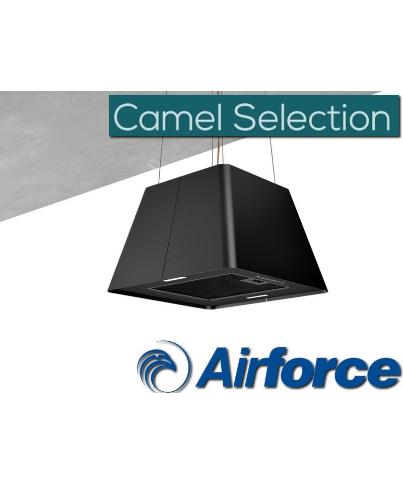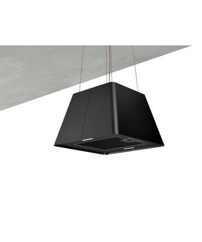 Cappa ad isola nera o inox, dimensioni 45 cm, illuminazione 2x2,1 W led 3500 K 190 lux, pulsantiera elettronica a 4 velocità (3+1 intensiva), solo filtrante, filtri odori regular inclusi, portata IEC 600 m3/h, rumorosità 49/64/68 dB(A), distanza minima dal piano cottura 50 cm se induzione e 65 cm se a gas, timer, classe energetica C, filtri grasso lavabili.