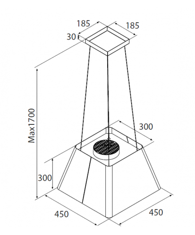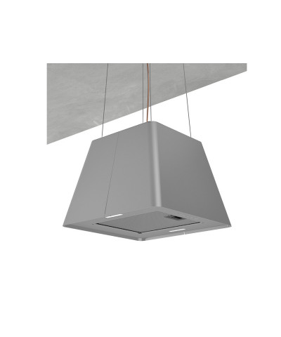Cappa ad isola nera o inox, dimensioni 45 cm, illuminazione 2x2,1 W led 3500 K 190 lux, pulsantiera elettronica a 4 velocità (3+1 intensiva), solo filtrante, filtri odori regular inclusi, portata IEC 600 m3/h, rumorosità 49/64/68 dB(A), distanza minima dal piano cottura 50 cm se induzione e 65 cm se a gas, timer, classe energetica C, filtri grasso lavabili.