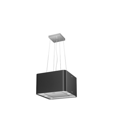 Cappa ad isola da 45 cm in acciaio verniciato nero o bianco, solo filtrante, dimensioni 45x45 cm, illuminazione 2x2,1W led 3500 K 336 lux, telecomando a 4 velocità (3+1 intensiva), rumorosità 50/65/69 dB(A), portata IEC 725 m3/h, distanza minima dal piano cottura 50 cm se induzione e 65 se a gas, classe energetica B, filtri grasso lavabili, filtri odori regular inclusi, dimensioni uscita aria 150x100 mm.