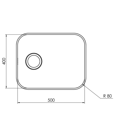 Lavello in acciaio inox AISI 304-18/10, piletta da 3", satinato, sottotop, 50x40 cm R80, base 80 cm, profondità vasca 19 cm, foro sottotop vedi manuale di installazione, piletta standard manuale.