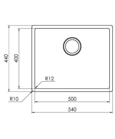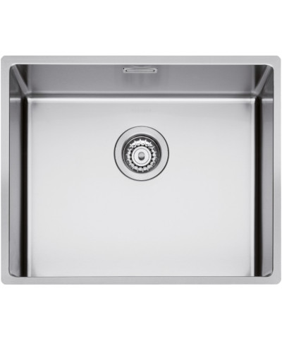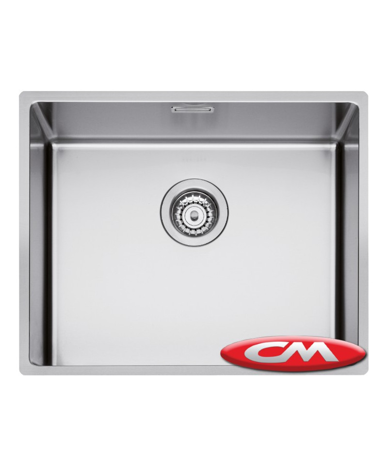 Lavello in acciaio inox AISI 304-18/10, 54x44 cm, satinato, sottotop, base sottotop 80 cm, profondità vasca 20 cm, foro sottotop 50x40 cm R12, piletta Vortex manuale.