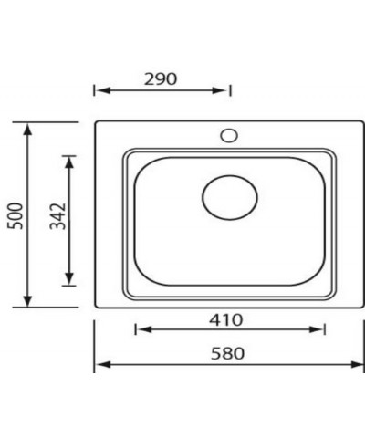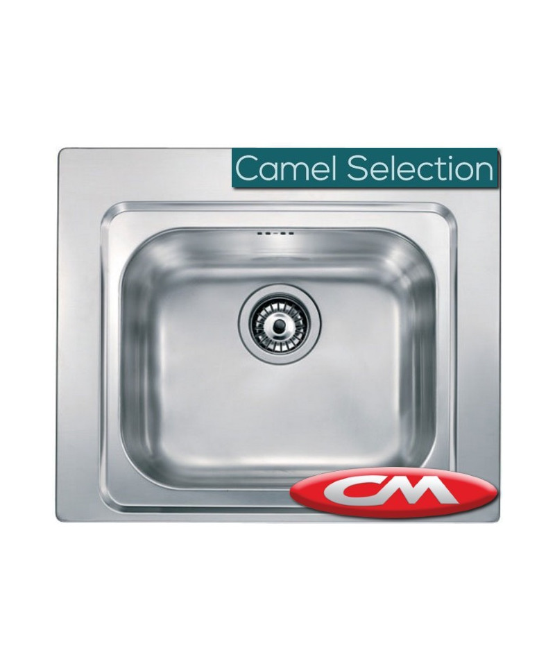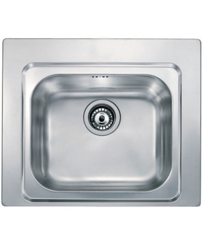 Lavello in acciaio inox AISI 304-18/10, satinato, vasca saldata, 58x50 cm, profondità vasca 18 cm, foro incasso 56x48 cm, base da 60 cm, piletta standard manuale da 3", guarnizione premontata.