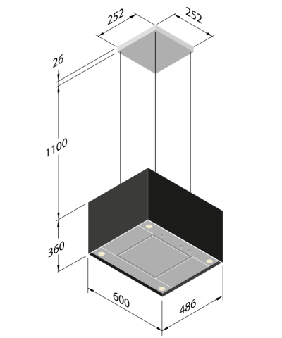 Cappa ad isola da 60 cm, vetro bianco/nero/tortora/visone, comando rotativo a 4 velocità, classe energetica B, portata motore IEC 265-630 m3/h, pressione motore velocità intensiva 560 Pa, illuminazione power led (4x1,2 W - 4000° K), livello sonoro 49-68 dBa. Filtri in alluminio, diametro raccordo 150 mm, distanza da piano consigliata 65 cm. Optional: filtro carbone PCR3 215x240x10h mm (1x).