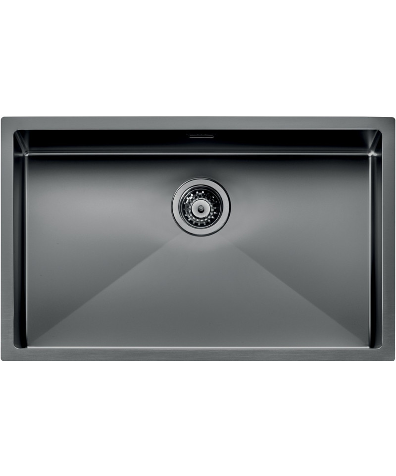 Lavello Iride in acciaio matt con trattamento PVD, 3" - 77x45x19, slim/sottotop/filotop, base incasso mm 800/base sottotop mm 900/base filotop mm 800, profondità vasca mm 190, foro incasso mm 750x430, foro sottotop mm 720x400 r10, foro filotop (manuale installazione), piletta standard manuale.