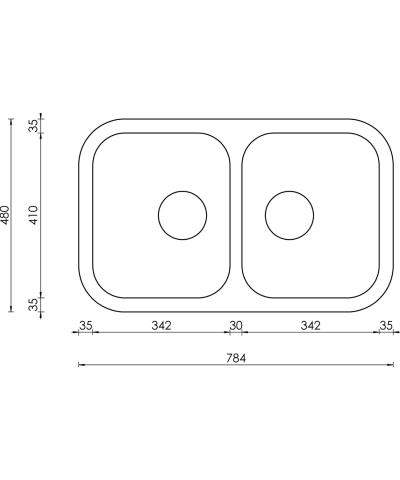 Lavello in acciaio inox AISI 304-18/10, piletta da 3", satinato, sottotop, 78,4x48 cm, vasca saldata, base 90 cm, profondità vasche 19 cm, foro sottotop vedi manuale di installazione, piletta standard manuale.