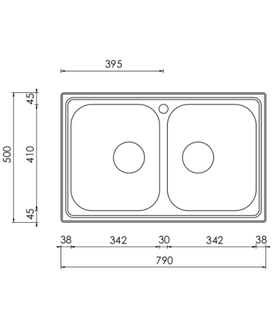 Lavello in acciaio inox AISI 304-18/10, vasche saldate, 79x50 cm, satinato, base 80/90 cm se inizio composizione, profondità vasche 20 cm, foro incasso 765x475 cm, piletta standard manuale da 3".