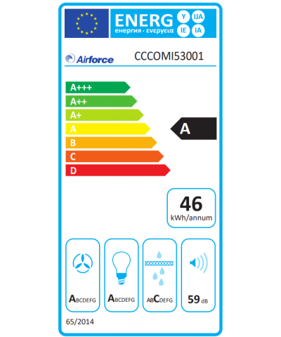 Cappa da incasso da 83 cm, finitura in acciaio inox o nera, pulsantiera elettronica a 4 velocità (3+1 intensiva), timer, aspirazione perimetrale, filtri grasso lavabili, portata IEC 625 m3/h, livello sonoro 49/59/65 dB(A), illuminazione 2x2,3 W Strip Led, 4000 K, 240 lux, dimensioni uscita aria diametro 150 mm, distanza minima dal piano cottura 50 cm se induzione 55 cm se a gas, peso 12 kg, classe energetica A, foratura 815x265 mm, installazione facilitata.