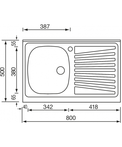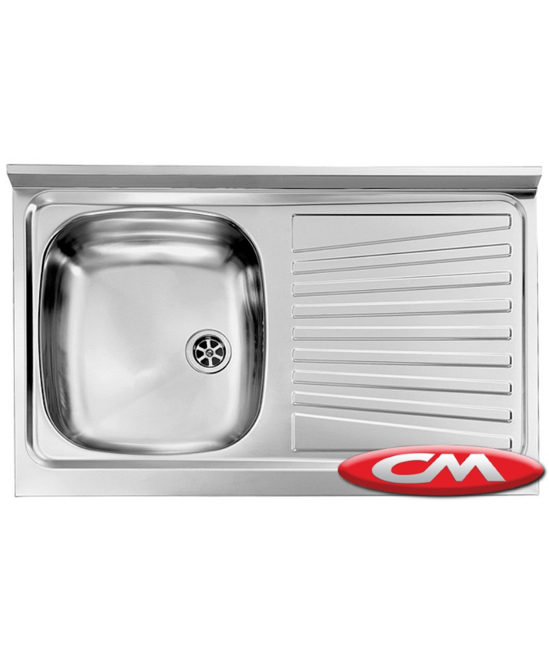 Lavello in acciaio inox AISI 304-18/10, appoggio, monostampo, 80x50 cm 1V, prelucidato, base 45 cm / 50 cm se inizio composizione, profondità vasca 15 cm, piletta standard manuale da 2", versione non reversibile.