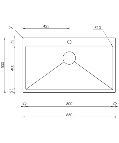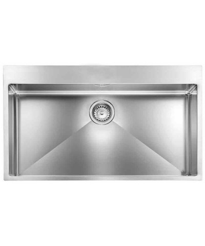 Lavello in acciaio inox AISI 304-18/10, 85x50 cm, satinato, piletta da 3", slim, base 90 cm, profondità vasca 19 cm, foro incasso 83x48 cm, piletta standard manuale.
