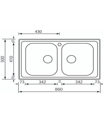 Lavello in acciaio inox AISI 304-18/10, satinato, incasso standard, 86x50 cm, vasca saldata, base 80/90 cm se inizio composizione, profondità vasche 21 cm, foro incasso 83,5x47,5 cm, piletta standard manuale.