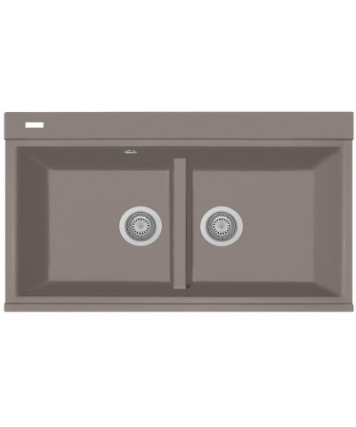 Lavello a due vasche, serie Lux, 860x510 mm, base da 90 cm. Foro per l'incasso 840x490 mm. Piletta nera con cover e troppopieno neri sulla versione Volcano Black (Cod. KITBLACK1 - KITBLACK2). Piletta standard e cover inox sulle altre colorazioni RINNOVA (Cod. COVERIX).