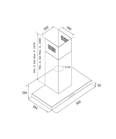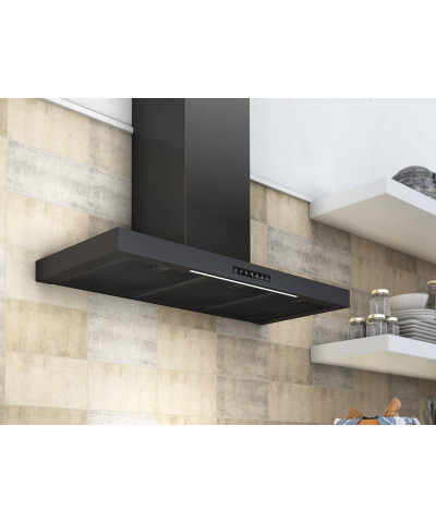 Cappa a parete in acciaio inox o nera da 90 cm, comando touch a 4 velocità (3+1 intensiva), modalità automatica, controllo dei filtri, timer, diametro uscita aria 150 mm, filtri grasso lavabili, portata IEC 620 m3/h, rumorosità 48/61/65 dB(A), illuminazione 4,8 W strip led, temperatura di colore 4000 K, intensità 107 Lux, classe energetica A, distanza minima dal piano cottura 50 cm induzione e 65 cm se a gas.