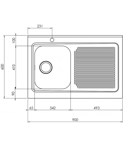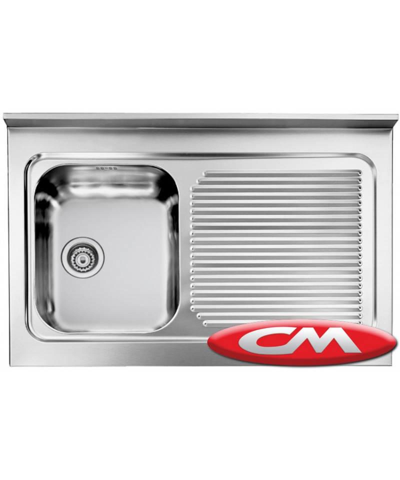 Lavello in acciaio inox AISI 304-18/10, vasca saldata, 90x60 1V, appoggio, satinato, base da 45 cm, profondità vasca 19 cm, piletta standard manuale da 3", versione non reversibile.