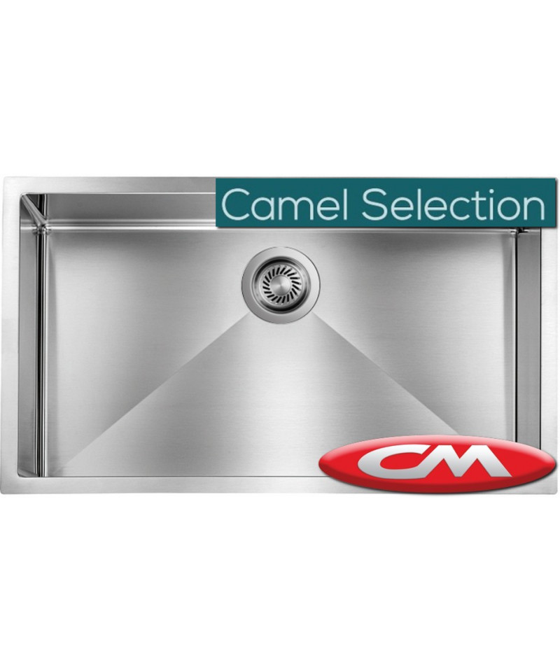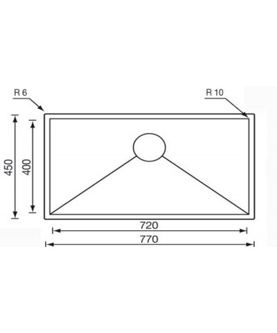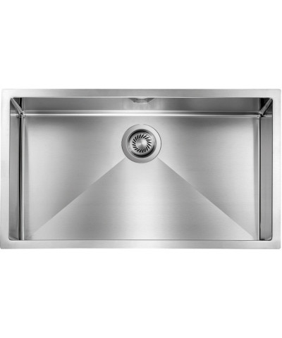 Lavello in acciaio inox AISI 304-18/10, sottotop, satinato, 77x45 cm, profondità vasca 19 cm, foro sottotop 72x40 cm r10, base sottotop da 90 cm, piletta standard manuale. Design minimale, pareti diritte, angoli arrotondati e specchiatura del fondo.