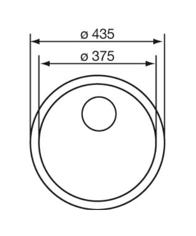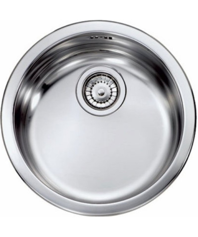 Lavello in acciaio inox AISI 304-18/10, satinato, piletta da 3", diametro 43,5 cm, base da 45 cm, profondità vasca 16 cm, foro incasso diametro 42 cm, piletta standard manuale.