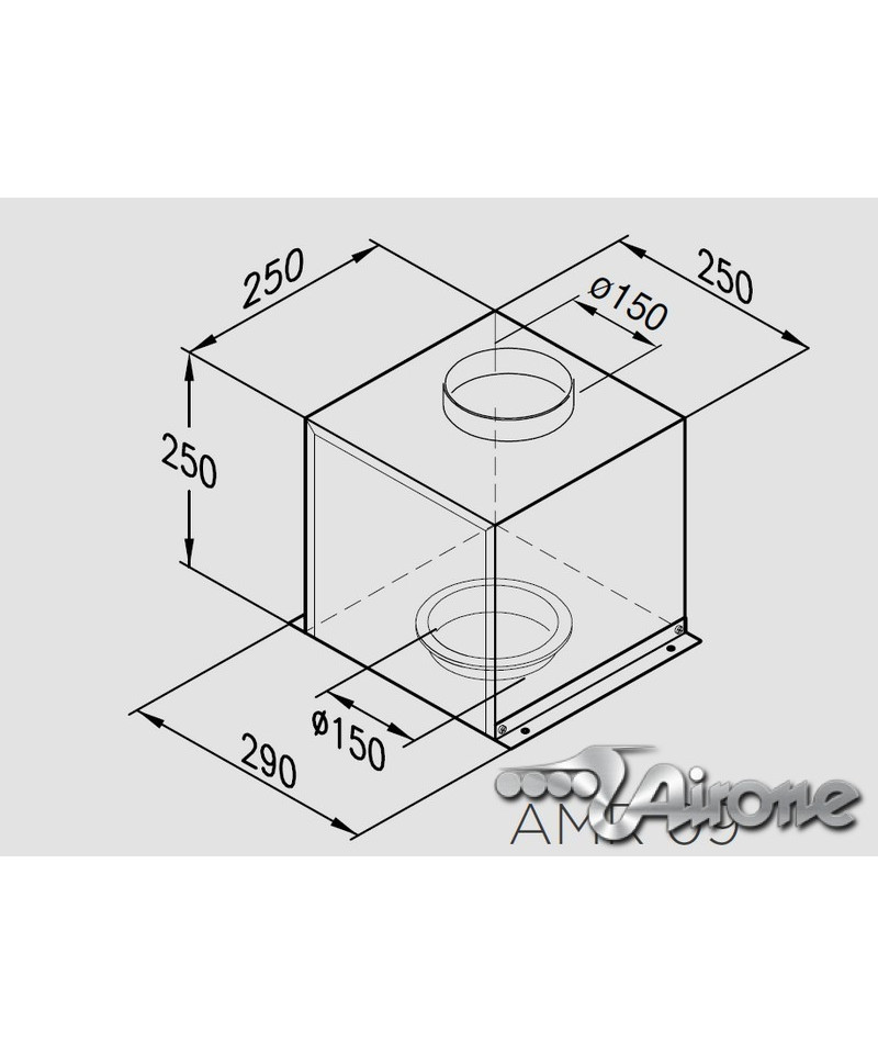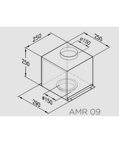 Motore remoto AMR09, portata motore IEC 280-680 m3/h, pressione motore velocità massima 560 Pa, livello sonoro 51-72 dBA, potenza 235 W, lunghezza cavo 10 m, diametro raccordo d'ingresso 150 mm, diametro raccordo di uscita 150 mm.