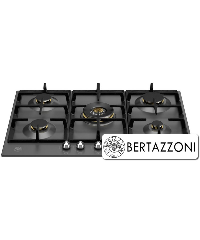 Piano cottura a gas da 75 cm, wok centrale, nero, serie Heritage. Cinque bruciatori in ottone, wok 4kW centrale, griglie in ghisa, manopole in metallo, isolamento termico manopole, accensione elettronica istantanea, sistema di sicurezza fiamma sicura, bordo semifilo, misura incasso standard, finitura piano in acciaio smaltato nero.