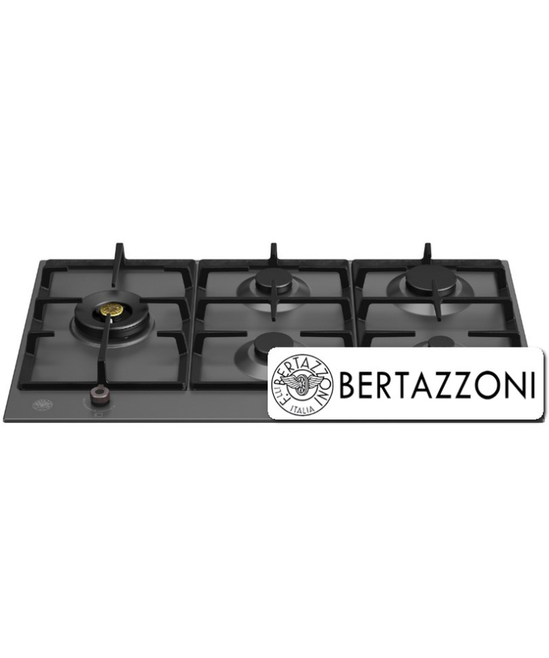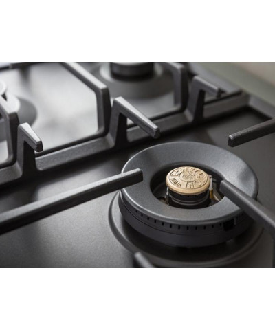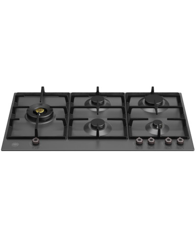 Piano cottura a gas da 90 cm, dual wok laterale, nero, serie Professional. Cinque bruciatori in ottone, dual wok 5kW laterale, griglie in ghisa, manopole in metallo, isolamento termico manopole, accensione elettronica istantanea, sistema di sicurezza fiamma sicura, bordo semifilo, misura incasso standard, finitura piano nero opaco.
